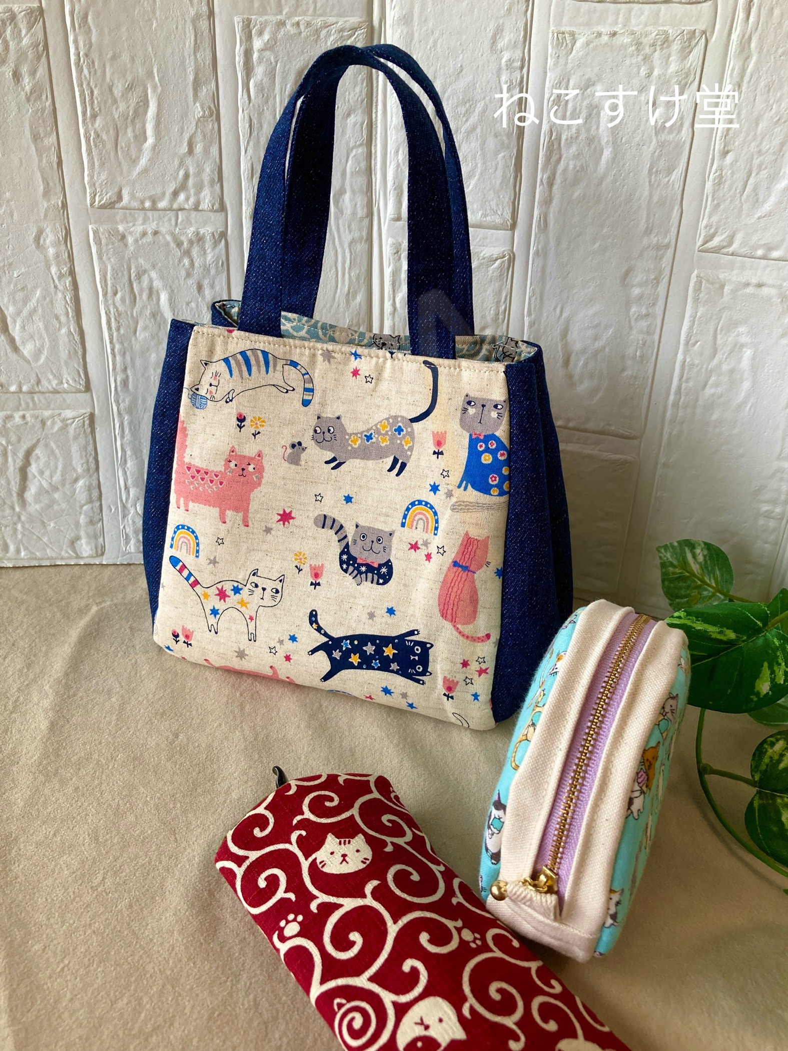 猫好きさんのための布小物作品を日々考え、楽しく活動させていただいております。カバンの中の小物に密かに猫ちゃんが顔をのぞかせていたり、猫柄のカバンやポーチを